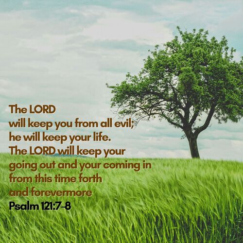 Psalm 121:7–8 – “The Lord will keep you from all evil; He will keep your life. The Lord will keep your going out and your coming in from this time forth and forevermore.”