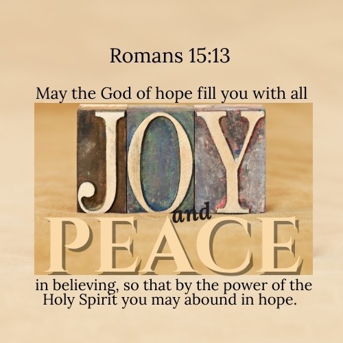 “May the God of hope fill you with all joy and peace in believing, so that by the power of the Holy Spirit you may abound in hope.” — Romans 15:13
