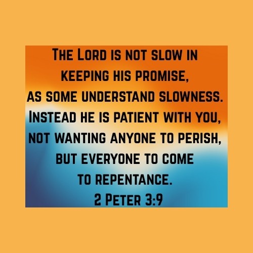 “The Lord is not slow in keeping his promise… Instead he is patient with you.” — 2 Peter 3:9