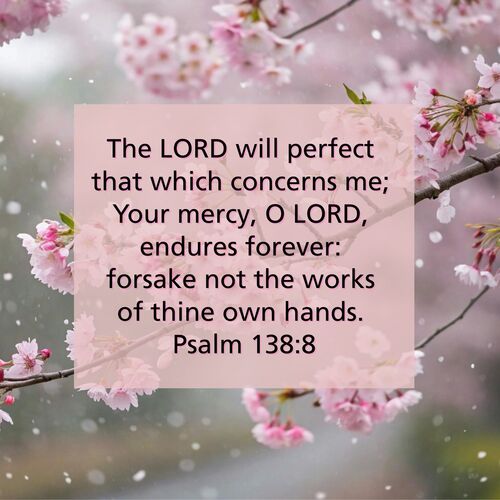 “The Lord will perfect that which concerns me; Your mercy, O Lord, endures forever; forsake not the works of Your own hands.” Psalm 138:8