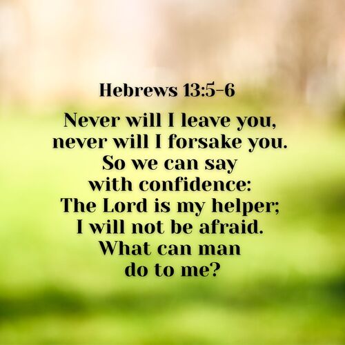 Hebrews 13:5–6 — “Never will I leave you; never will I forsake you. So we can say with confidence: The Lord is my helper; I will not be afraid. What can man do to me?”