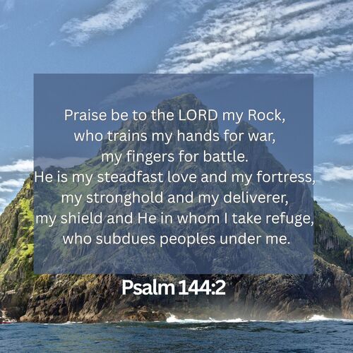 Psalm 144:2 – “Praise be to the LORD my Rock, who trains my hands for war, my fingers for battle.