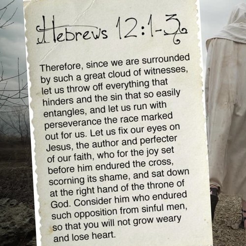 Therefore, since we are surrounded by so great a cloud of witnesses, let us also lay aside every weight, and sin which clings so closely, and let us run with endurance the race that is set before us, looking to Jesus, the founder and perfecter of our faith, who for the joy that was set before him endured the cross, despising the shame, and is seated at the right hand of the throne of God. Consider him who endured from sinners such hostility against himself, so that you may not grow weary or fainthearted. Hebrews 12:1-3