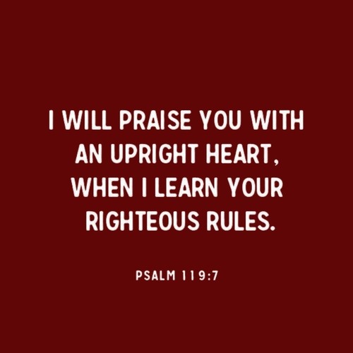 “I will praise you with an upright heart, when I learn your righteous rules.”