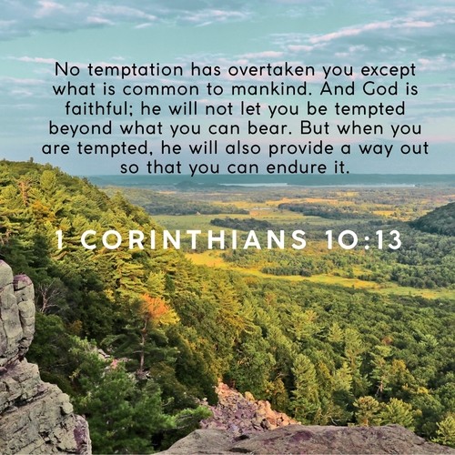 No temptation has overtaken you except what is common to mankind. And God is faithful; he will not let you be tempted beyond what you can bear. But when you are tempted, he will also provide a way out so that you can endure it.